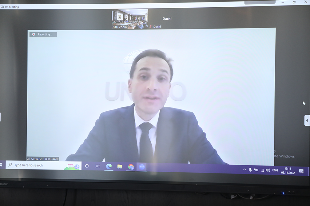 ბექა ჯაყელმა სტუდენტებს გაეროს მსოფლიო ტურიზმის ორგანიზაციის ისტორიის შესახებ ვიდეორგოლი წარუდგინა, რომელიც მსოფლიო ტურიზმის თანამედროვე ტენდენციებს ასახავს, კერძოდ კი: ტურიზმი პანდემიამდე, პანდემიის პერიოდში და მისი აღდგენის მიმართულებები პანდემიის შემდეგ; გლობალური კრიზისის უარყოფითი გავლენა სექტორზე; სამი უმთავრესი საფრთხე ტურიზმის სექტორისათვის; ტურიზმის მზარდი სახეობები; ეროვნულ, რეგიონულ და ადგილობრივ დონეზე მიმდინარე და მოსალოდნელი ცვლილებები ტურიზმის სფეროს მართვის მიმართულებით; ახალი ბიზნესმოდელები მსოფლიო ბაზარზე; ტურიზმის მდგრადი განვითარების მნიშვნელობა; გაეროსა და მსოფლიო ტურიზმის ორგანიზაციის როლი მდგრადი განვითარების მიმართულებით; UNWTO-ს სტრატეგიული მიზნები და პრიორიტეტები; ქვეყნების მთავარი პრიორიტეტები და UNWTO-ს როლი; საქართველო და UNWTO.