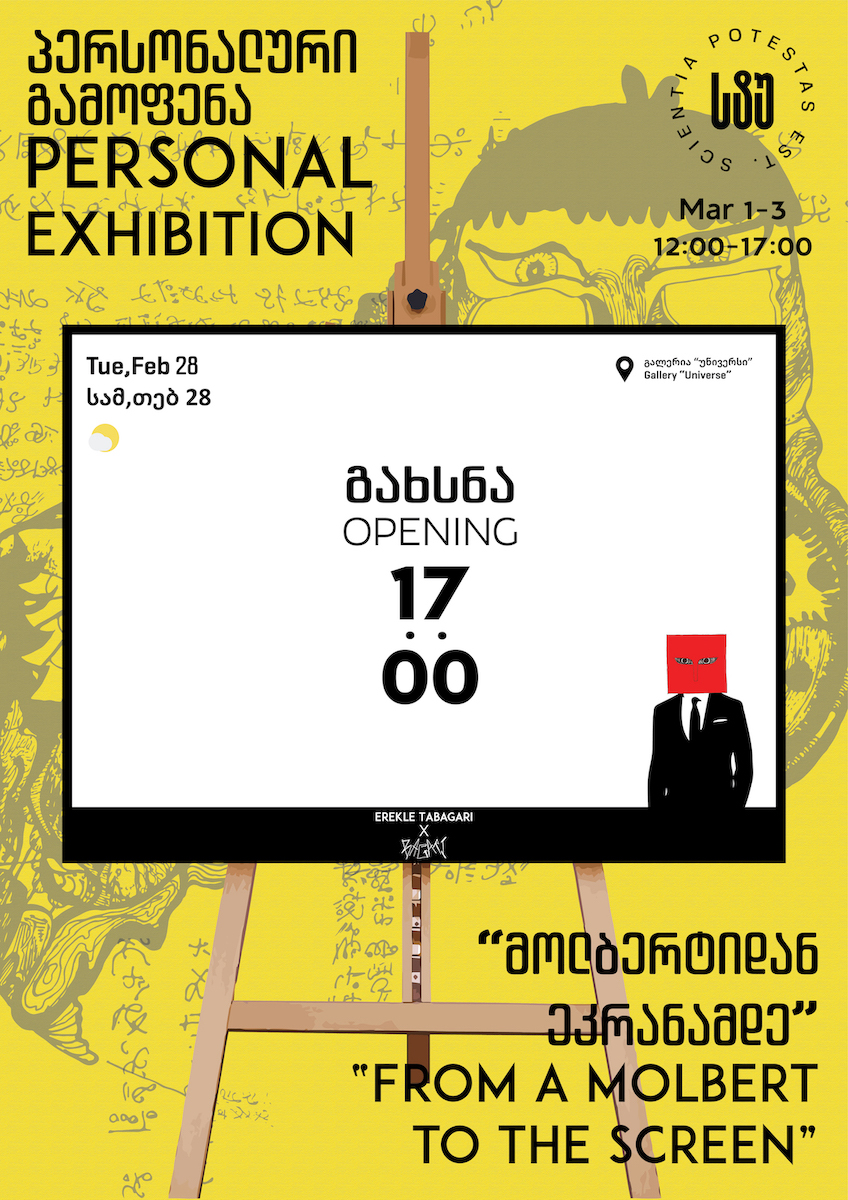 „მოლბერტიდან ეკრანამდე“ - ასე დაასათაურა თავისი პირველი პერსონალური გამოფენა სტუ-ის დიზაინის საერთაშორისო სკოლის მე-4 კურსის სტუდენტმა, ერეკლე თაბაგარმა.