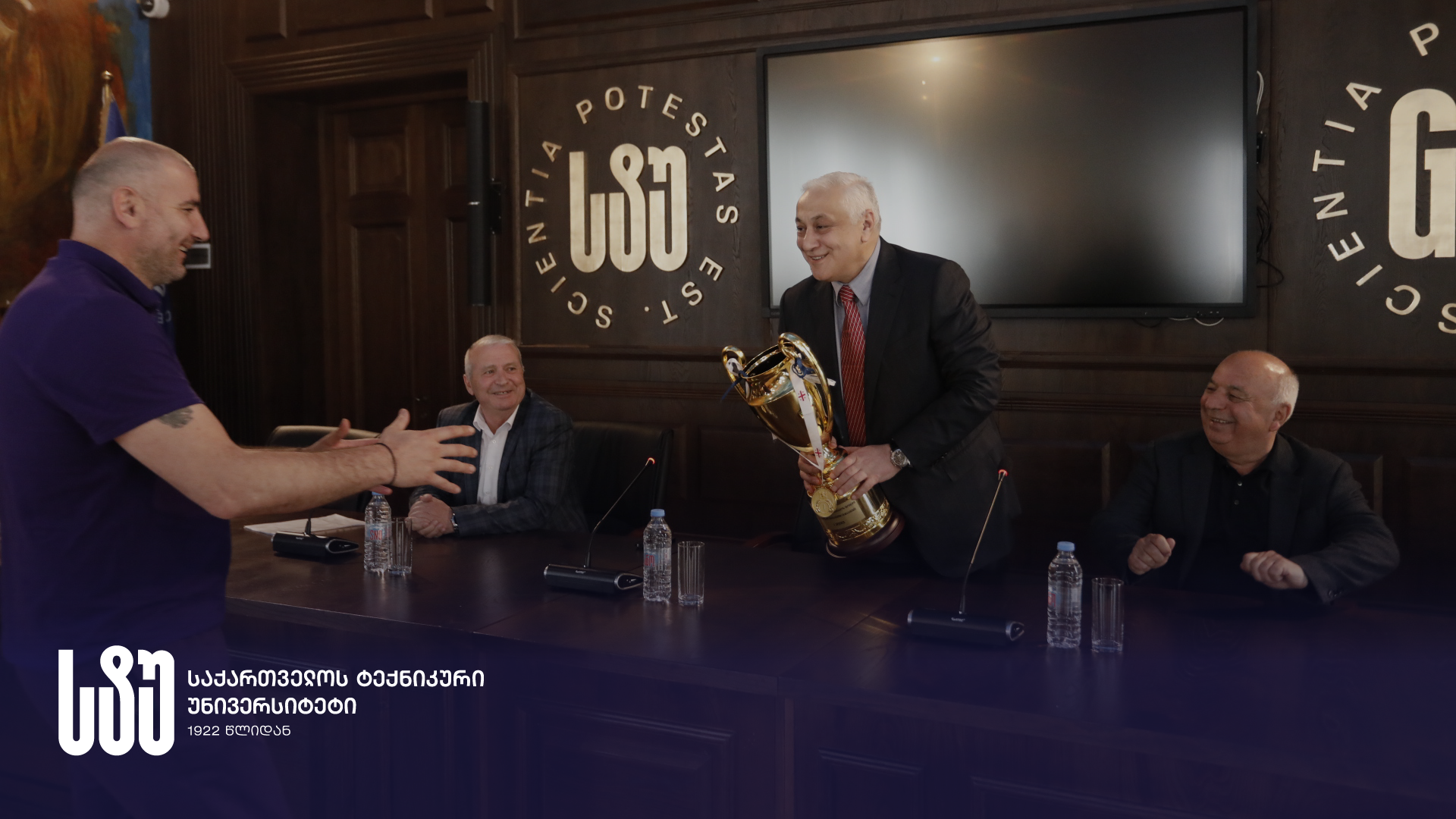 საქართველოს ტექნიკური უნივერსიტეტის კანცლერმა, პროფესორმა კარლო კოპალიანმა ფრენბურთში საქართველოს ეროვნულ ჩემპიონ გუნდსა და მწვრთნელებს სიგელები გადასცა, წარმატებები უსურვა და უნივერსიტეტის სახელით, სამომავლო ასპარეზობისთვის მხარდაჭერა აღუთქვა.