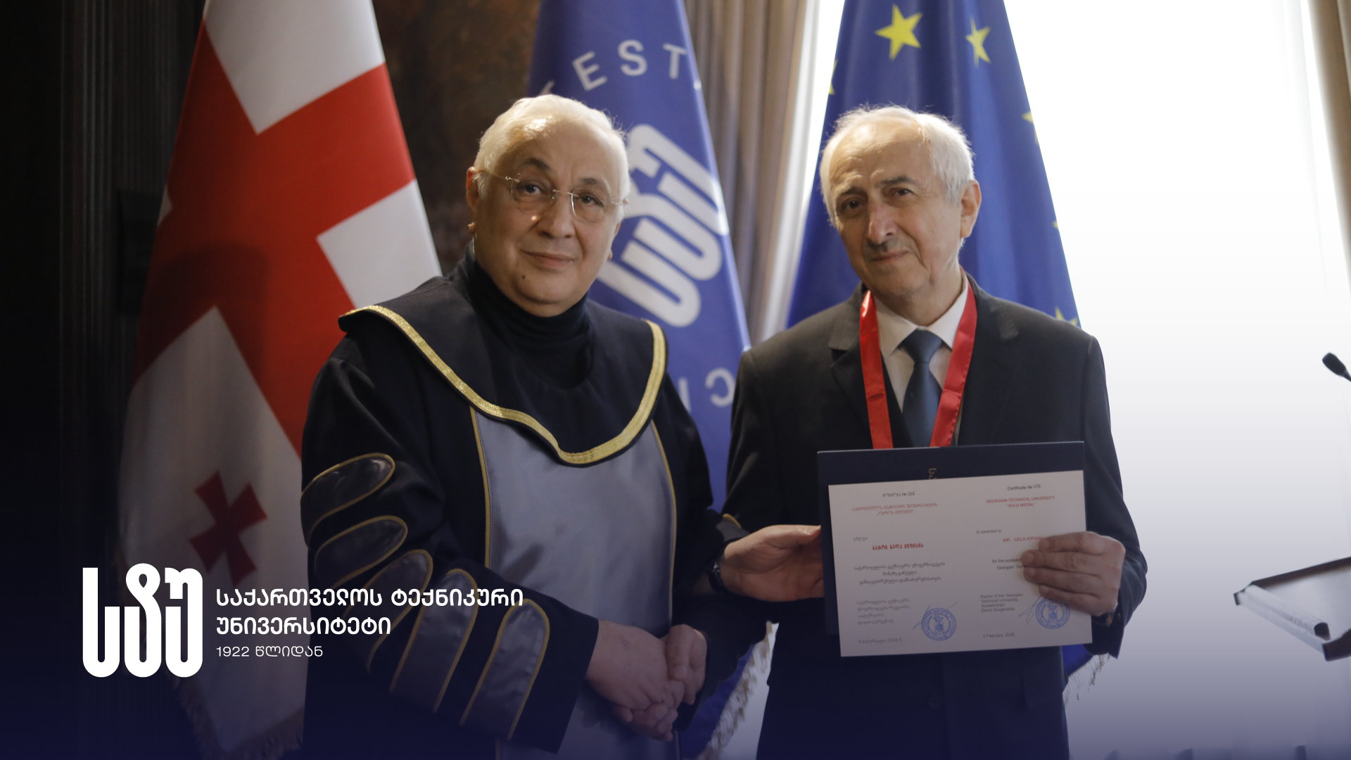 The award established on May 19th, 2022 - the GTU “Gold Medal” - is awarded for exceptional contributions to the Georgian Technical University, based on the nomination of the Rector and the decision of the Academic Council. Since its inception, this award has been granted to more than 80 scientists and researchers, including both Georgian and foreign citizens.